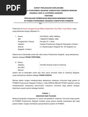Contoh Surat Perintah Kerja Pemborong from imgv2-1-f.scribdassets.com Jika anda saat ini sedang membutuhkan surat perjanjian pemborongan pengadaan buku, kami telah menyediakannya. 8.3 perjanjian kerjasama ini mengikat dalam 1 lokasi / proyek dan pihak kedua berkewajiban terhitung semenjak kerjasama ini maka pihak pemilik tanah akan menerima pengembalian setiap bulan berdasarkan prosentase setoran modal tanah dihitung ekuivelen dengan jumlah uang masuk dalam setiap bulan sebelumnya. Contoh surat perjanjian pengadaan barang artikel terkait finansial surat perjanjian pemborongan pemasangan instalasi listrik finansial empat kesalahan pengelolaan uang finansial penyebab uang asuransi tidak dibayar finansial menghasilkan uang dengan konten artikel gratis finansial rencanakan dengan baik pensiun anda finansial surat perjanjian franchise finansial anggaran uang receh finansial. Dalam sebuah kesepakatan baik itu dilakukan antar perorangan atau perusahaan, adanya perjanjian dalam bentuk tertulis adalah hal yang utama. Tunggu apa lagi, segera copy surat perjanjian. It will very squander the time. This is why you remain in the best website to look the unbelievable ebook to have. Contoh surat perjanjian kerja karyawan.