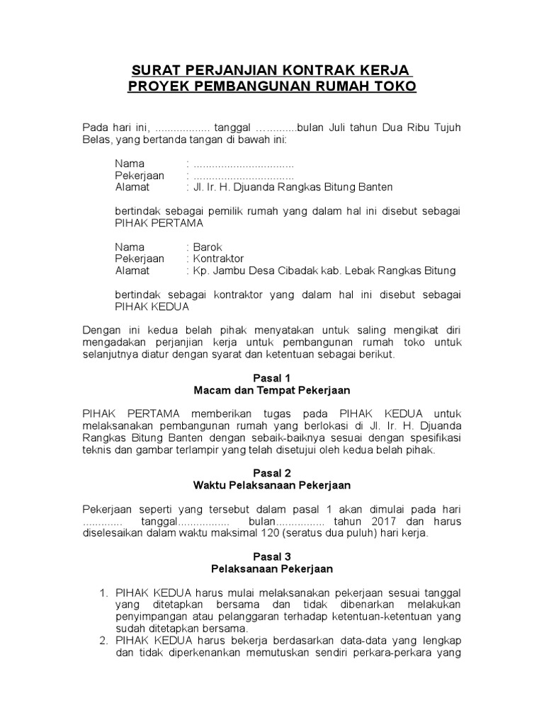 Surat perjanjian kontrak kerja proyek pembangunan rumah tinggal pada hari ini, kamis tanggal enam september tahun dua ribu sembilan, yang bertanda tangan di bawah ini: Seperti surat contoh yang tertulis di bawah ini. Sun 23 apr 2017 061500 gmt ulasan lengkap. Itulah pembahasan dan contoh dari kontrak perjanjian pekerjaan proyek yang dapat kami sajikan. Surat perjanjian kerja sama pengadaan barang.